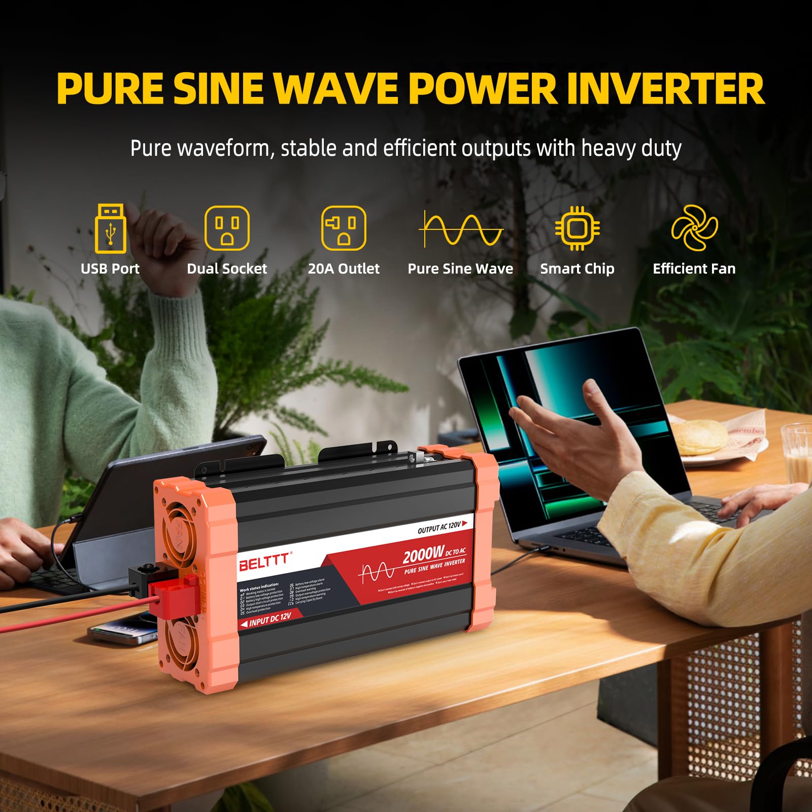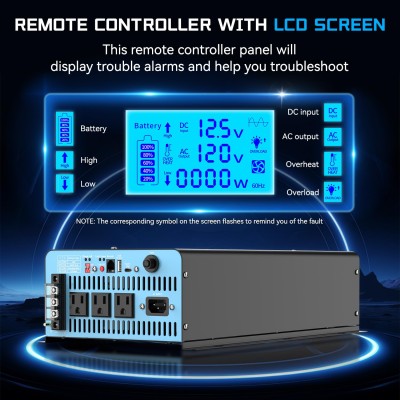 Ampinvt 800W Pure Sine Wave Inverter with AC Charger, DC 12V to AC 120V Output,UPS Backup Power Low Frequency Inverter for Lithium, Sealed